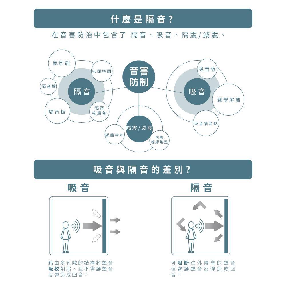 | 處理重點 | 改善室內聲音品質與聽感 | 降低聲音外洩或外部噪音傳入 |