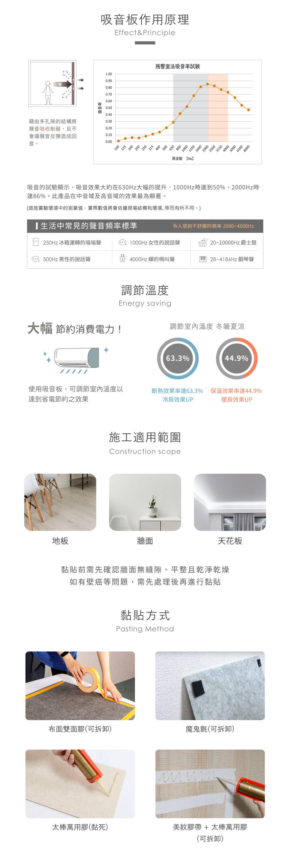 ※布面膠帶拆卸式黏著方法僅適用吸音板牆面與地板鋪設,天花板適用。