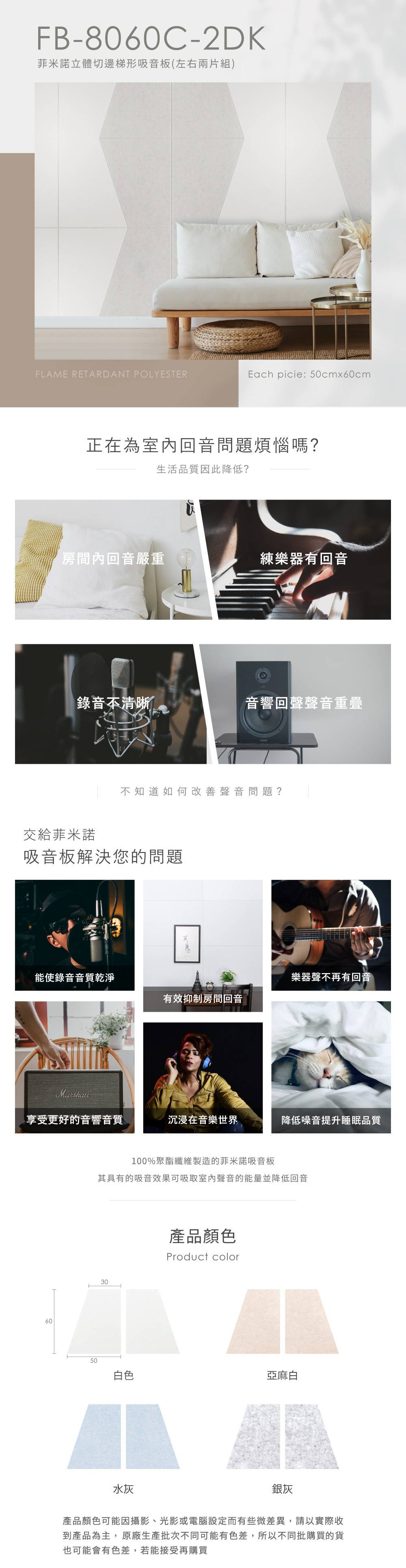 品名:菲米諾45度立體切邊梯形吸音板(二片裝)