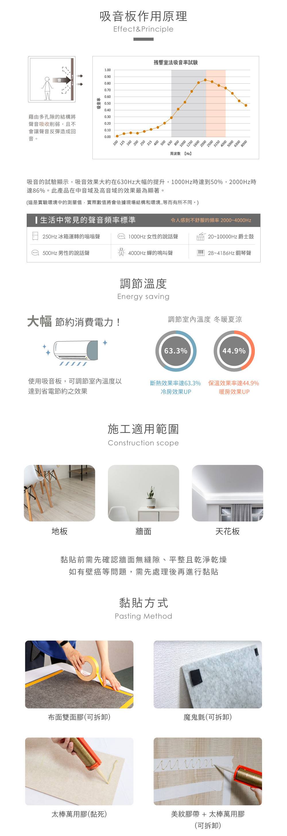 ※布面膠帶拆卸式黏著方法僅適用吸音板牆面與地板鋪設,天花板不適用。