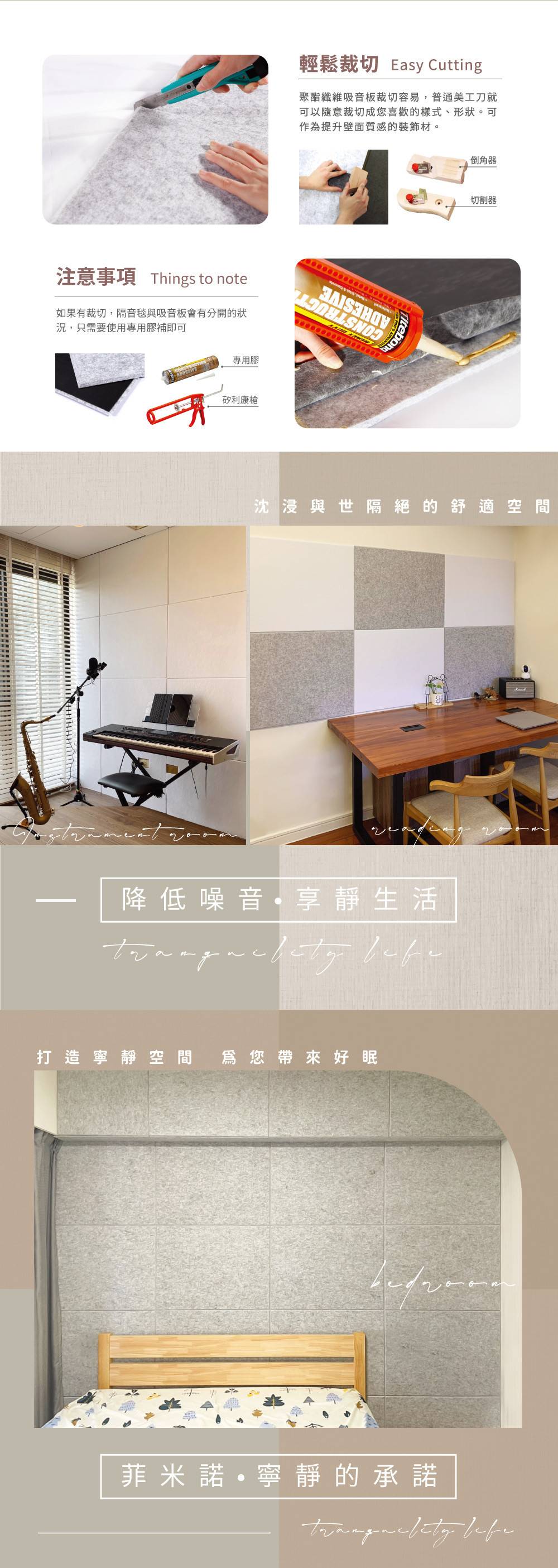 ※但因切割後易導致隔音墊與吸音板分離,建議切割後可再使用太棒膠將隔音墊、吸音板黏貼回去。