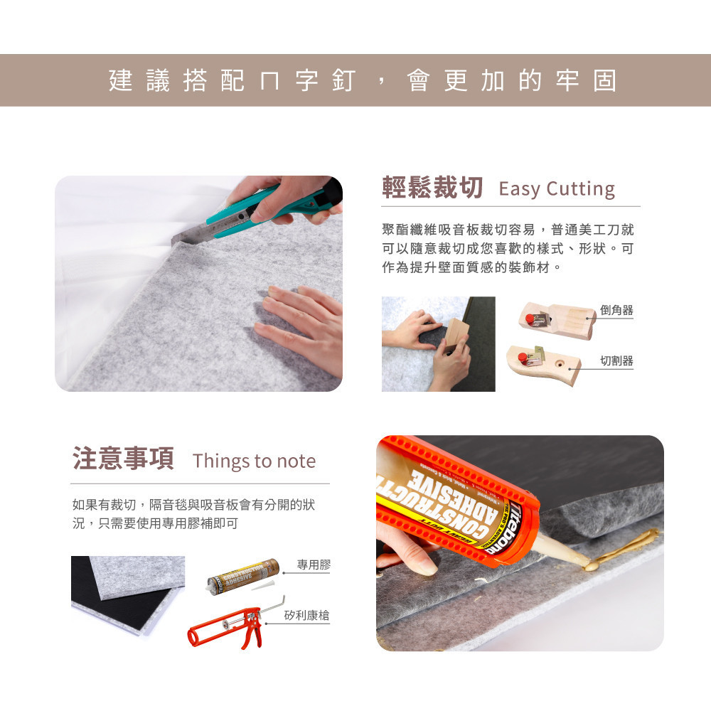 ※但因切割後易導致隔音墊與吸音板分離,建議切割後可再使用太棒膠將隔音墊、吸音板黏貼回去。