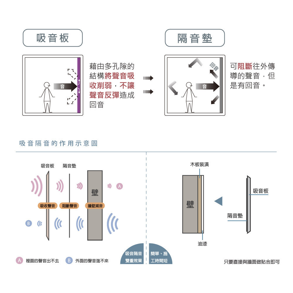 能同時處理室內空間的吸音與隔音問題,進而提升您的工作與生活品質.....
